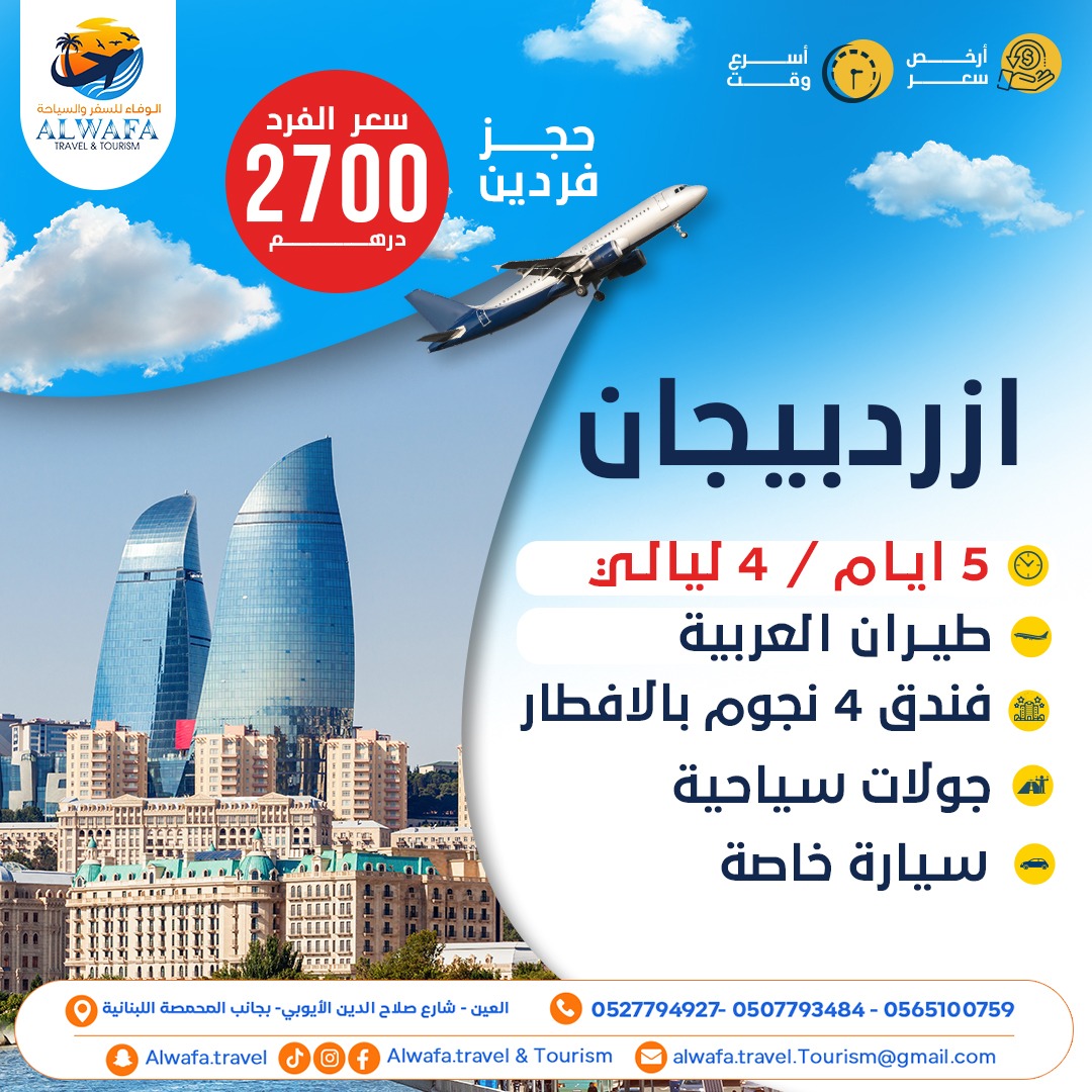 1 – طيران مباشر من الشارقة الي باكو والعودة طيران العربية