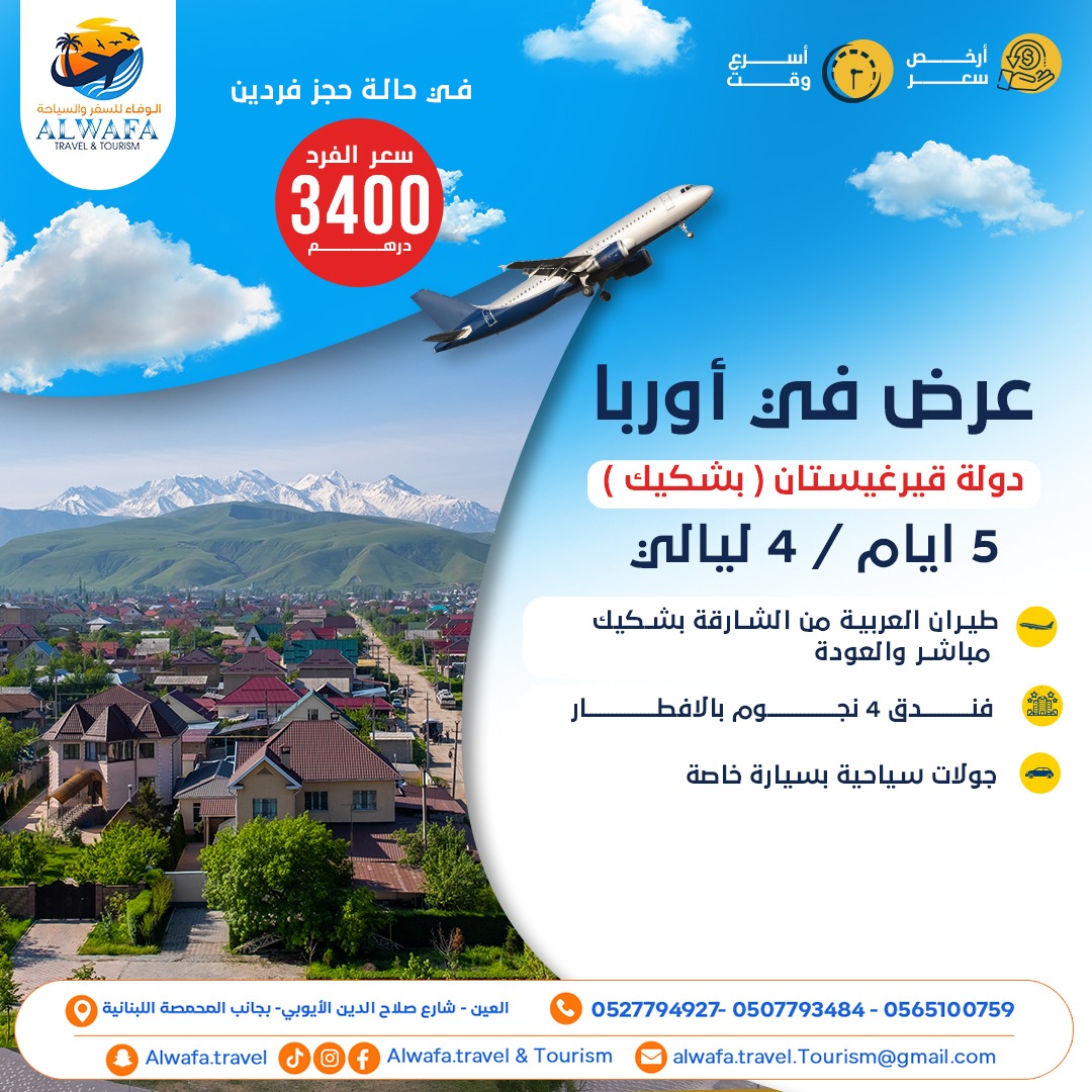 طيران العربية من الشارقة بشكيك مباشر والعودة
