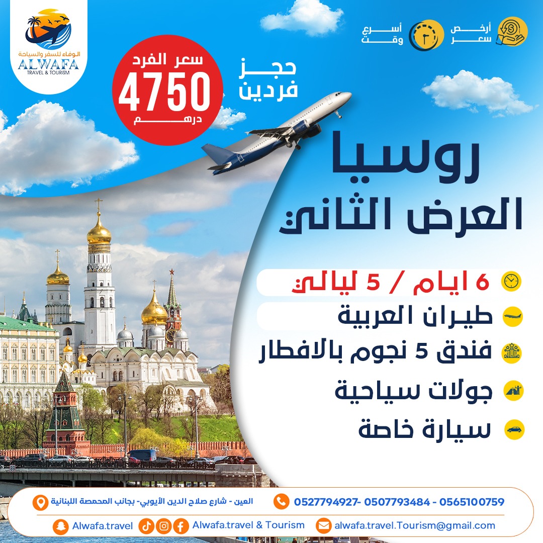 طيران مباشر من الشارقة الي موسكو والعودة ( طيران العربية )