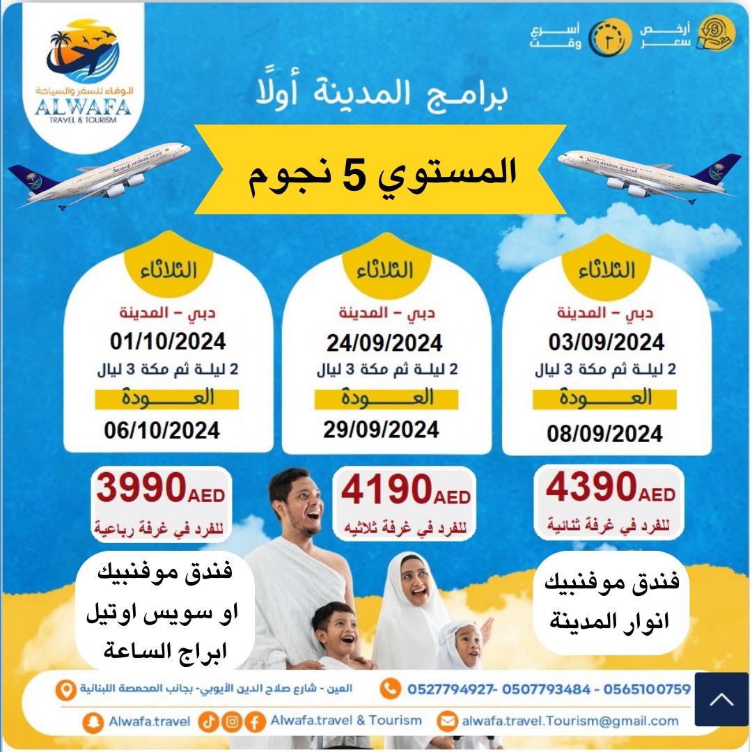 24-9-2024 دبي – المدينة 2 ليلة ثم مكة 3 ليالي