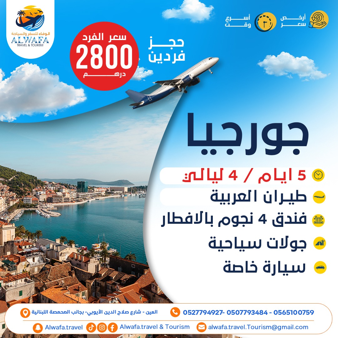 1 – طيران مباشر من الشارقة الي تبليسي والعودة طيران العربية